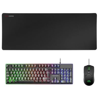🇪🇸 Mars Gaming MCPX Combo Gaming 3en1 con Teclado H-Mech Iluminado Ratón Ultraligero 10000 dpi con Software y Alfombrilla XXL Compatible con PC PS4 PS5 Xbox Idioma Español Negro